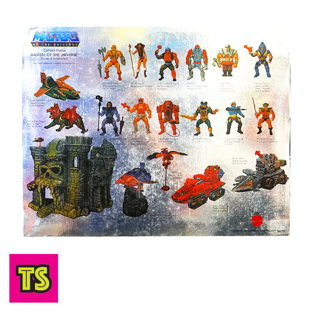 • Vintage Packaging: The large, collector-friendly window box prominently displays the figures and features classic Masters of the Universe graphics. The back of the package features an authentic reproduction of the original toy line art, including Castle Grayskull and other iconic vehicles and figures.